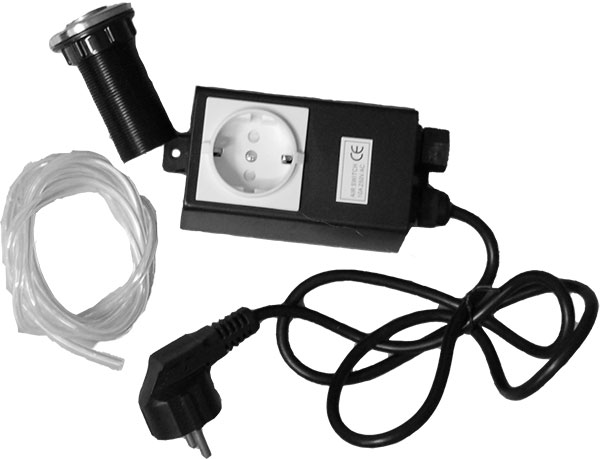 - krabica so spínačom má kábel dĺžky 100 cm so zástrčkou do el. siete, na krabici je EÚ-zásuvka pre pripojenie drviča odpadu.