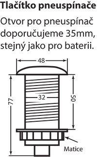 - tlačidlo (piestok) pneuspínača, ktoré sa umiestňuje na drez alebo na pracovnú dosku, priemer otvoru 35 mm, priemer vrchu 50mm.